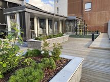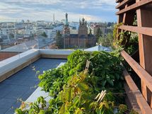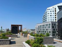 Samassa kerroksessa on myös yhtiön hyvin hoidettu kattopiha, jossa pöytäryhmiä, istutuksia ja kuntoiluteline - sekä upeat maisemat kaupungille ja Nokia Arenalle.