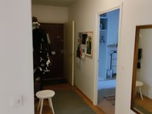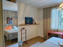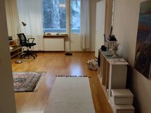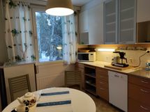Asunto on ollut omassa asuinkäytössä ennen vuokralle asettamista vuosi sitten ja siihen on tehty pintaremonttia säännöllisesti vuosien varrella. Olohuoneen laajalle seinälle on asennettu taulukisko.