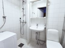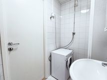 Laatoitetussa kylpyhuoneessa on liitäntä pyykinpesukoneelle, ja keittiöstä löytyy astianpesukone.