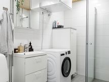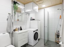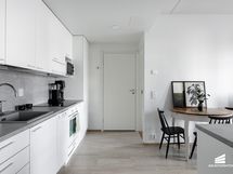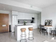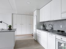 Avokeittiö on varustettu nykyaikaisin mukavuuksin: tilava jääkaappipakastin, keraaminen liesitaso ja astianpesukone tekevät ruoanlaitosta vaivatonta. Tyylikkäässä, laatoitetussa kylpyhuoneessa on liitäntä pyykinpesukoneelle sekä sähköinen mukavuuslattialämmitys. Vedenkulutusta voit seurata reaaliaikaisesti huoneistokohtaiselta näytöltä, mikä auttaa hallitsemaan kustannuksia.