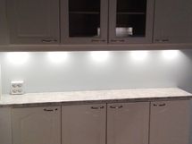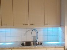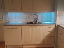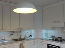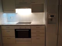 - Paljon kaappitilaa, Paljon työskentelytilaa, Lasikaapit, Halogeenivalot, Suuri tiskipöytä, Laminaattitasot, Pesukoneliitos, Keraaminen liesi, Liesi tai uuni erikseen, Liesikupu, Jenkkikaappi, Pakastin, Tilaa isolle ruokapöydälle, Astianpesukone