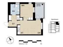 The shared facilities available for residents include a sauna, an outdoor equipment storage and storage spaces. A limited number of parking spaces in the parking garage are available for rent at 50 euros per month.