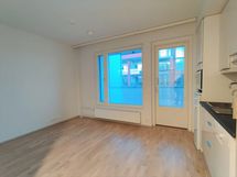 Huone avokeittiöllä. Keittiössä astianpesukone, jääkaappi pakastelokerolla sekä uunimikro yhdistelmä. Tilavassa kylpyhuoneessa tila- ja liitäntä pesukoneelle sekä kuivausrummulle. Lasitettu parveke. Asunnossa sälekaihtimet. Kaapeli-TV.