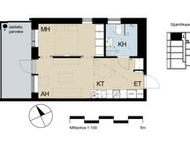 The shared facilities available for residents include a sauna, an outdoor equipment storage and storage spaces. A limited number of parking spaces in the parking garage are available for rent at 50 euros per month.