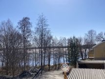 Aurinkoinen kesäkolmio järvinäkymällä ja parvekkeella. 50 metriä lähimpään uimapaikkaan.