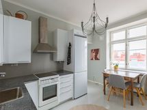 - Keittiön varusteet: Jääkaappipakastin, uuni, liesi, liesituuletin, astianpesukone ja mikroaaltouuni. Liesi: Keraaminen liesi. Työtason materiaali: Kivi.