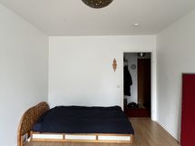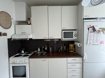 Valoisassa asunnossa on erillinen keittiö, jossa tällä hetkellä yhden hengen työpöytä. Vapautan kesän ajaksi vaatehuoneesta ison vaatekaapin kokonaan vuokralaisen käyttöön. Vaatehuoneessa on säilössä varavuode, joka myös tarvittaessa vuokralaisen käytössä.