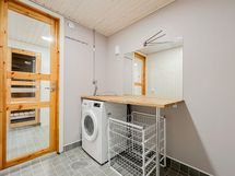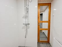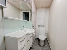 - Suihku, Pesukonevalmius, Laattalattia, Laattaseinä, Peilikaappi, Allaskaappi, Erillinen WC, Lattialämmitys