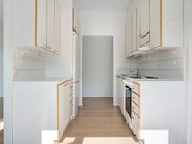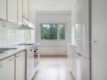 Keittiön varustukseen kuuluu jääkaappipakastin, lattiauuni ja perinteinen liesi. Astianpesukoneelle on myös tilavaraus. Kylpyhuoneessa on paikka ja liitännät pyykinpesukoneelle. Olisiko tässä uusi vuokrakotisi?