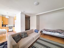 Lattiamateriaalina asunnossa on laminaatti lukuunottamatta kylpyhuoneen laattalattiaa. Keittiössä on hyvin säilytystilaa ja sinne mahtuu myös pieni ruokapöytä. Kylpyhuoneesta löytyy liitäntä pyykinpesukoneelle. Vaikka asunto on ensimmäisessä kerroksessa, niin parveke ei kuitenkaan ole maantasalla!