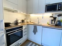 Varusteet: jääkaappipakastin, astianpesukone. Liesi: keraaminen liesi, erillisuuni, liesikupu
