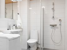 - Pesutilojen kuvaus: Kylpyhuone on reilun kokoinen. Kylpyhuoneen lattialämmitys menee omasta sähköstä. . Varustus: lattialämmitys, wc-istuin, suihku.
