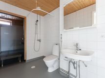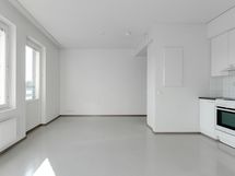 Tässä asunnossa kiva avoin pohjakuva, jossa keittiö ja olohuone yhtenäistä tilaa tuoden avaruutta asumiseen. Asumismukavuutta lisäämässä oma sauna ja ranskalainen parveke.