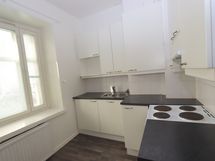 Liesi: sähköliesi. Työtasot: laminaatti. Kylmäsäilytys: jääkaappi. Varustus: liesituuletin / suodatin.