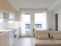 Tämän tyylikkään asunnon voi vuokrata kalustettuna Pitkämäen Pukkilan uudiskohdealueelta.