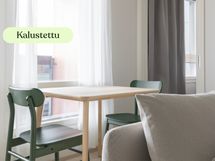 Koti on valmiiksi kalustettu muuttaessasi sisään ja vuokrasuhteen päätyttyä kalusteet jäävät asuntoon.