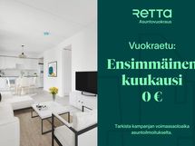 1. kuukauden vuokra 0€, edellyttää 12kk sitoutumista asuntoon. Edun saa uusiin vuokrasopimuksiin jotka alkavat viimeistään 1.3.2026. Vakuus 350 eur.
