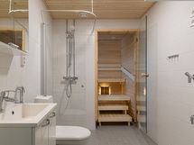 The eight-story Ajatar building has a total of 73 rental apartments. Options range from 29-square-meter studios to 63-square-meter two-bedroom apartments. The timeless color tones of the surface materials vary from white to light gray. The easy-care oak laminate flooring completes the cozy look of the home. The appliances have been selected to be not only high-quality but also easy to use. The stoves have an automatic power-off feature, and the apartments are equipped with an automatic sprinkler system. The apartments come with a dishwasher, a ceramic cooktop, a built-in oven, and a fridge/freezer combination.