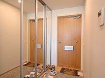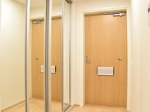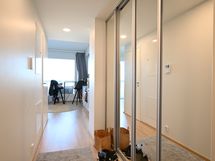 Eteisessä on liukuovikaapisto kirkkain peilein ja katossa led-valaisin.