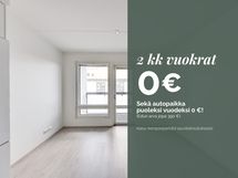 Kampanja! 2 kk vuokrat 0 € sekä autopaikka veloituksetta 6 kuukauden ajan (edun arvo jopa 390 €). Saat edun, kun allekirjoitat vuokrasopimuksen 31.1.2026 loppuun mennessä. Rajoitettu määrä autopaikkoja vapaana. Vuokravapaat kuukaudet ovat helmikuu sekä kesäkuu.