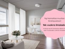 Kampanjaehdot: Kampanja voimassa Juli Kirstinpuiston Christinen asuntoihin, joihin solmitaan toistaiseksi voimassa oleva vuokrasopimus 12 kuukauden minimiasumisajalla. Jotta voit hyödyntää kampanjamme, asunnon vuokraus on tehtävä verkkosivuillamme 1.11.-30.11.2025 välisenä aikana. Vuokrauksen yhteydessä maksettu ennakkovuokra vähennetään kolmannelta täyden kuun vuokralaskulta ja kampanjaetu vähennetään neljänneltä täyden kuun vuokralaskulta. Mikäli sopimus on kestänyt alle 4 kuukautta, kampanjaetua ei hyödynnetä eikä sitä hyvitetä vuokralaskulta. Mikäli sopimus irtisanotaan ennen minimiasumisajan päättymistä, aiemmin hyvitetty kampanjaetu laskutetaan viimeisessä vuokralaskussa. Kampanjaetua ei voi hyödyntää aiemmin tehtyihin vuokrasopimuksiin eikä etua voi yhdistää muihin kampanjoihin. Kampanjaetua ei voi hyödyntää sopimusmuutoksissa, asunnonvaihdoissa Juli-kodista toiseen minimiasumisaikana tai jos vuokranmaksu ei ole ajan tasalla. Kampanjaetu ei koske vesimaksua.