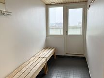 Eteisen yhteydessä on vaatehuone sujuvoittamaan arkea. Kylpyhuoneessa on liitäntä ja tila pyykinpesukoneelle. Taloyhtiössä on myös pesutupa sekä remontoitu sauna ylimmässä kerroksessa!