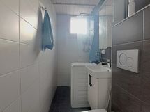 - Varustus: suihkuseinä, pesukone, pesukoneliitäntä, wc-istuin, suihku, peilikaappi, kylpyhuonekaapisto.