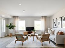 The homes are designed with brightness, spaciousness, and practicality in mind. The light-colored surfaces have been painted with high-quality Tikkurila paint in a stylish and modern Symphony shade. The semi-matte finish provides an elegant look and durability for everyday living. Warm wood tones add a cozy and timeless atmosphere to the space. The kitchen's integrated appliances and dimmable fixed lighting enhance living comfort, and in the bathrooms, underfloor heating adds the finishing touch. In larger apartments, everyday luxury includes a private utility room. The property has also been awarded the highest possible energy rating: A2018!