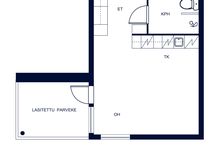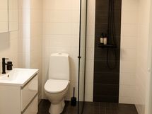 - Pesutilojen varusteet: WC-istuin, suihku, suihkuseinä, pesukoneliitäntä, lattialämmitys, peilikaappi, pesuallas, allaskaappi ja bidee-suihku.