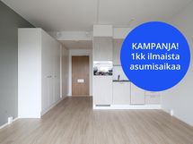 KAMPANJA: Ensimmäisen kokonaisen kuukauden vuokra veloituksetta. Ensimmäinen mahdollinen irtisanomisaika kampanjasopimuksessa on 11 kk kuluttua vuokrasopimuksen alkamisesta. Etu voimassa vain uusille asukkaille ja koskee vain vuokraa, ei käyttökorvauksia.