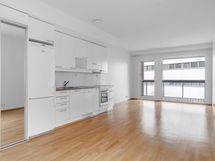 Tasokas kaupunkikaksio ihastuttaa vaaleilla pinnoillaan ja hyvällä varustetasollaan. Pitkän mallinen pohjaratkaisu jäsentyy helposti makuualkoviksi ja olohuoneeksi vaikkapa sermin tai kirjahyllyn avulla, ja kodissa on hyvin tilaa niin ruokailu- kuin sohvaryhmällekin. Lasikaiteinen lasitettu parveke antaa Lenkkipolun puolelle luoteeseen.