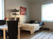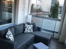 Tilava yksiö suurella lasitetulla parvekkeella