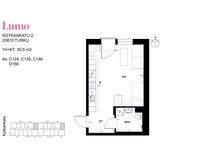 Tämä avara Lumo-koti erottuu edukseen. Yksiön pohjaratkaisu eroaa yleisesti tarjolla olevista, joten jos etsit jotain erilaista, tässä voisi olla ratkaisusi. Pieni kaapisto rajaa muuten avointa tilaa, luoden tilaan pienen alkovi syvennyksen.