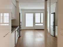 Asunnossa on kauniit pintamateriaalit. Lattioissa on lankkua muistuttava, tyylikäs laminaatti. Keittiön varustukseen kuuluu integroitu liesi, uuni ja astianpesukone. Työtasot ovat kvartsia. Kylpyhuoneessa on lattialämmitys ja paikka pyykkikoneelle.
