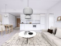 Heti vapaa 8.kerroksen valoisa kulmahuoneisto. Avara olohuone ja keittiö yhdistelmä. Ikkunoissa sälekaihtimet. Vaalea keittiö. Kokonaan laatoitettu kylpyhuone jossa tilavaraus pesutornille.