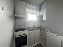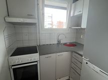 1.3.2026 vapautuva yksiö hissitalon 5. kerros. Lattiat laminaattia, seinät maalattu. Keittiön varusteena mm. tiskikone, keraaminen liesi sekä jää/pakastinkaappi. Kokonaan laatoitettu ikkunallinen kylpyhuone, varusteena mm. kuivaava pyykinpesukone. Vaatehuone. Lasitettu parveke.