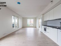 The layouts of the apartments have been carefully designed for comfort and easy living. The floors in the living areas are laminate and the bathrooms are tiled. The kitchen is equipped with an oven, induction hob, dishwasher and fridge-freezer combination. The bathrooms also have connections and space for a washing machine and tumble dryer, while the 30m2 1h-apartments and 40.5m2 2h-apartments have space for a washing machine only. The balconies of the apartments are glazed. Shared spaces for residents include storage rooms and outdoor equipment storage. There are car parking spaces available for rent.