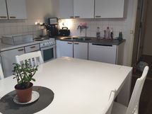 Laminaattitasot, Tilaa isolle ruokapöydälle, Astianpesukone, Jää-pakastinkaappi, Sähköliesi