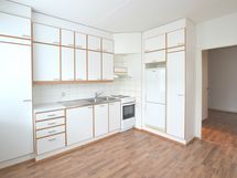- Keittiön varusteet: Jääkaappipakastin. Työtason materiaali: Laminaatti. Jääkaappi, liesi, liesituuletin, kaapistot.