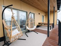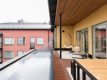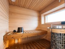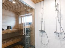 - Saunatilat ylimmässä kerroksessa terassin kanssa
