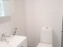 Suihku, Suihkuseinä, Pesukonevalmius, Peilikaappi, Allaskaappi, Laattalattia, Laattaseinä, Lattialämmitys