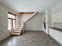 Näyttävä puutalokoti kahdessa tasossa. Keittiön ja olohuone tilan puolelta löytyy takka. Ylemmässä kerroksessa on kätevä syvennys, jossa on parvi. Parvi on 2m x 1,6m. Kylpyhuone tilat yläkerrassa, paikka pesukoneelle löytyy. Persoonallinen kokonaisuus tunnelmallisesta talosta.