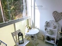 Juuri saneeratusta taloyhtiöstä tilava 59m2 asunto, jossa parveke ja ikkunat takapihalla olevan metsän suuntaan.