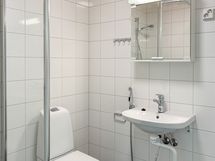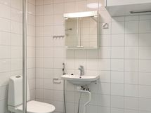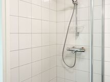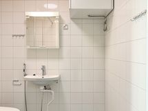 - Suihku, suihkuseinä, seinät ja lattia laatoitettu, peilikaappi, pesukoneliitäntä, tilavaraus pyykinpesukoneelle ja kuivausrummulle, bidee käsisuihku, pyyhekoukustot, lattialämmitys.