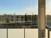 - Tämän valoisan huoneiston ikkunoissa on sälekaihtimet.