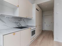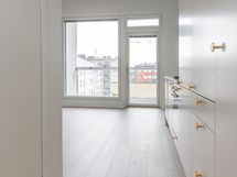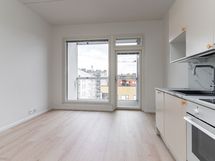 Tämä tilava ja valoisa yksiö jossa lattiasta kattoon ulottuvat ikkunat yhdistettynä tavanomaista korkeampaan huonekorkeuteen (n. 2,85m) luovat valoisan ja avaran tunnelman. Tässä asunnossa jokainen neliö on tehokkaassa käytössä. Miellyttävä vesikiertoinen lattialämmitys koko asunnossa mahdollistaa tasaisen lämmön ilman näkyviä patteriratkaisuja.