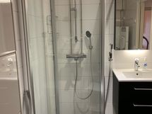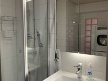 Asunnossa on tilava ja käytännöllinen kylpyhuone.