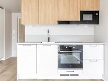 The homes are designed with brightness, spaciousness, and practicality in mind. The light-colored surfaces have been painted with high-quality Tikkurila paint in a stylish and modern Symphony shade. The semi-matte finish provides an elegant look and durability for everyday living. Warm wood tones add a cozy and timeless atmosphere to the space. The kitchen's integrated appliances and dimmable fixed lighting enhance living comfort, and in the bathrooms, underfloor heating adds the finishing touch. In larger apartments, everyday luxury includes a private utility room. The property has also been awarded the highest possible energy rating: A2018!