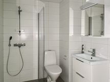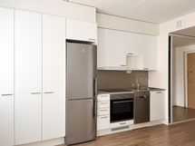 Tämä tyylikäs Lumo koti hurmaa laadukkailla materiaaleillaan ja toimivalla pohjaratkaisullaan. Lankkumainen laminaattilattia tuo lämpöä sisustukseen ja valkoinen keittiö rosterinsävyisine kodinkoneineen, integroidulla liedellä, uunilla ja astianpesukoneella tarjoaa kotikokille erinomaiset puitteet. Tyylikäs kvartsitaso viimeistelee kokonaisuuden. Raikkaassa kylpyhuoneessa on lattialämmitys, harmaan ja valkoisen sävyiset laatat sekä tila pyykinpesukoneelle. Peilikaappi ja allaskaappi tuovat käytännöllistä säilytystilaa pikkutavaroille.