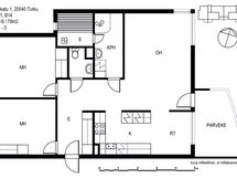 Kodin lattiamateriaalina on laminaatti ja seinät ovat maalatut. Keittiö ja kylpyhuone on kauttaaltaan remontoitu. Pyykinpesukoneelle on mahdollisuus.